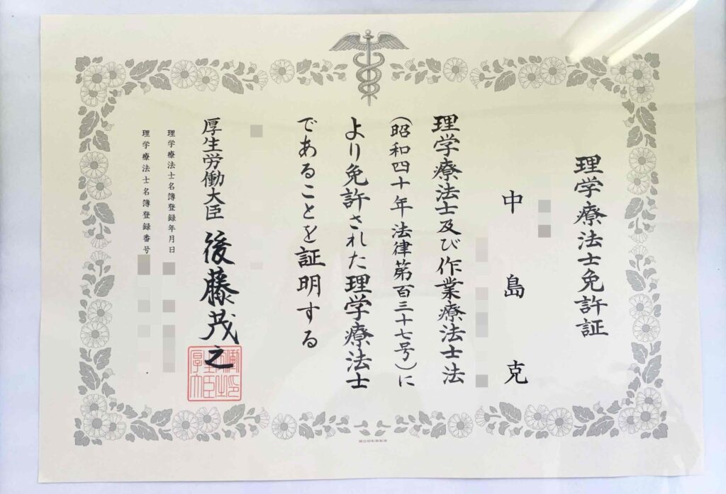 実は私、**国家資格の「理学療法士」**の資格を持っています。